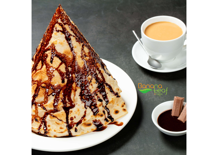 Roti Tissue is stretched thin and it is then shortly pan-fried. Roti is served wrapped around a large cone, covered chocolate syrup and sugar on top. Roti Tissue is a quick cake with a crunchy, fragrant crust, drizzled in chocolate and a layer of sugar on top.
